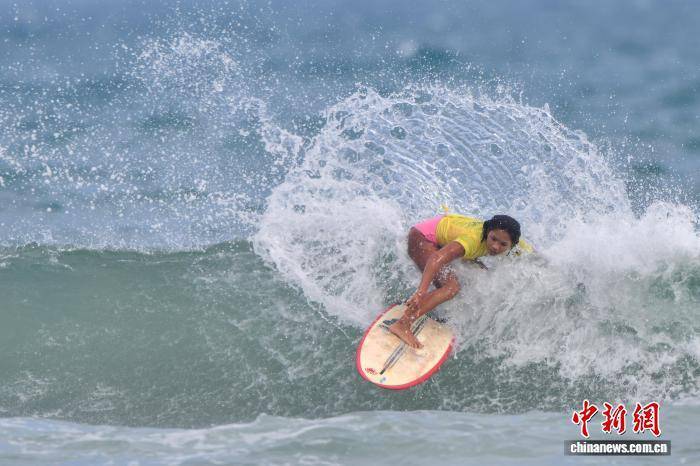 图为选手在参加2025天猫超级大满贯中国冲浪公开赛(海南万宁)的女子短板项目角逐。中新网记者 骆云飞 摄