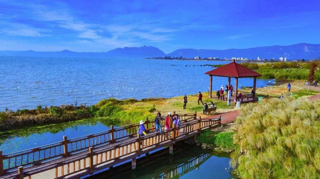 宝丰半岛湿地公园作为滇池湖滨生态修复的重要示范点,通过恢复天然湿地群落,成为展示滇池治理成果的生态之窗。