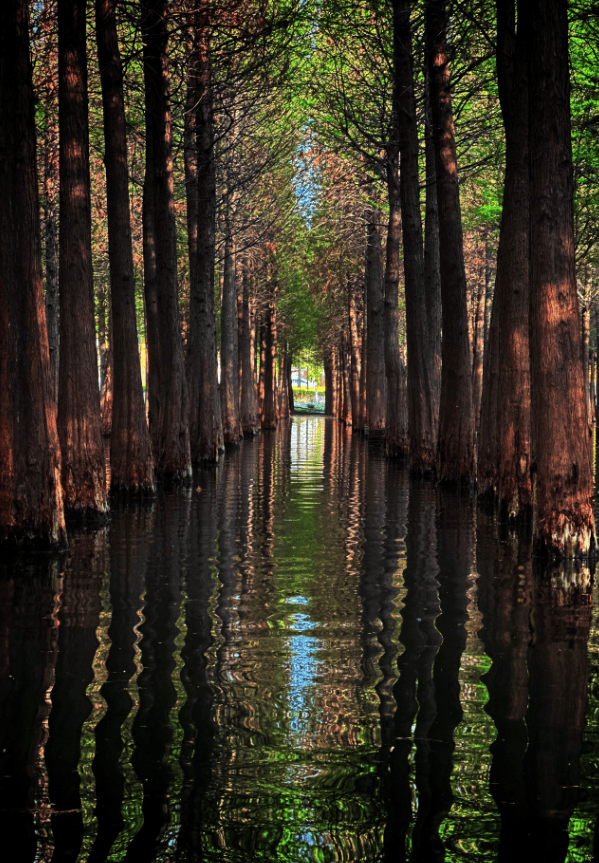 作为滇池湖滨生态修复的典范,海洪湿地公园以交错的水道和成片的水杉林构成了独特的城市生态景观。