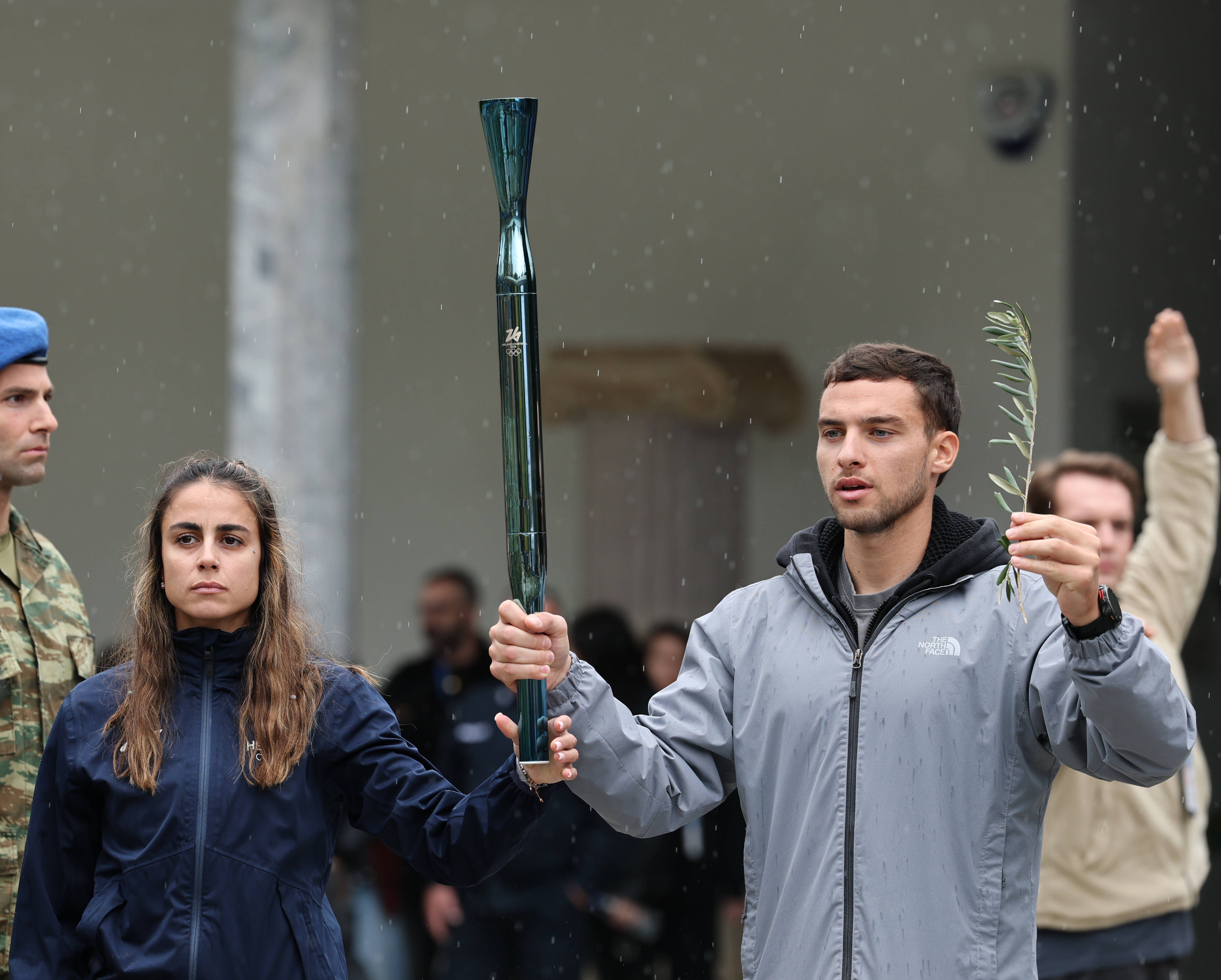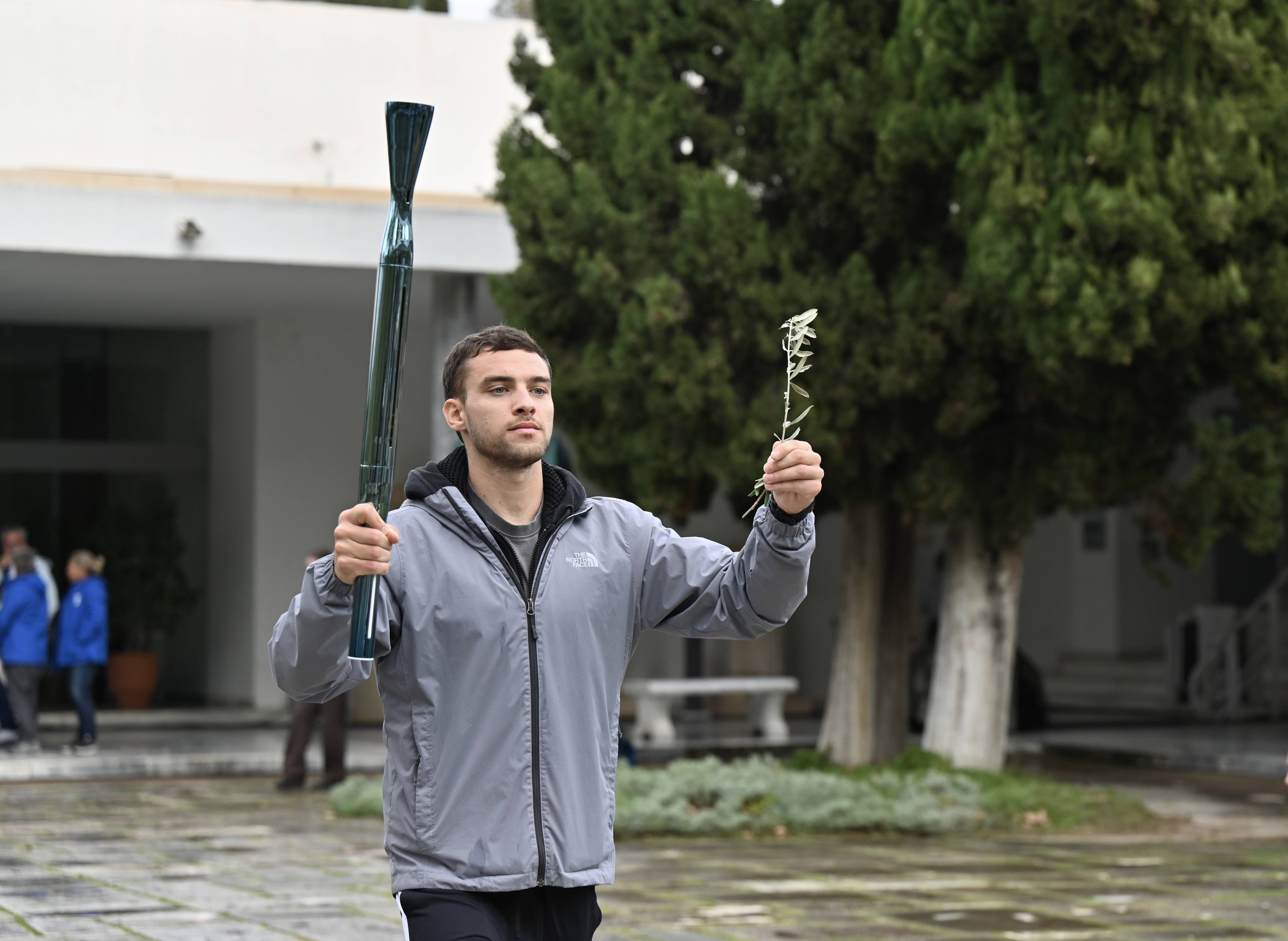 11月25日,第一棒火炬手、希腊运动员彼得罗斯在彩排中。 新华社记者 吕优 摄