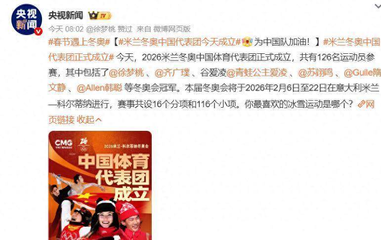 在2022年北京冬奥会上,中国冰雪军团取得了9金4银2铜的历史最佳战绩,位列金牌榜第三。此次远征亚平宁半岛,是北京冬奥会后,中国冰雪健儿首次以“追赶者”的身份出征境外赛场。各支国家队将面临气候、雪质、时差等多重客场挑战,优势项目需要在更加激烈的竞争中守正创新,力争再创辉煌。我们期待着中国冰雪健儿在米兰冬奥会上奋勇拼搏,为中国冰雪运动书写新的篇章!