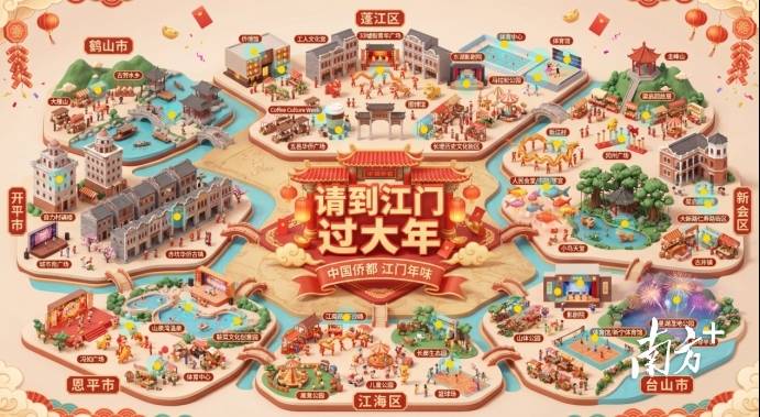 春节期间,“请到江门过大年”新春旅游地图正式上线。地图将集中展现各地特色民俗活动,活动主题、举办地点、必玩亮点一目了然,市民游客可快速便捷查询最新假期活动资讯,真正做到“一图在手,侨都春节玩法全都有”。