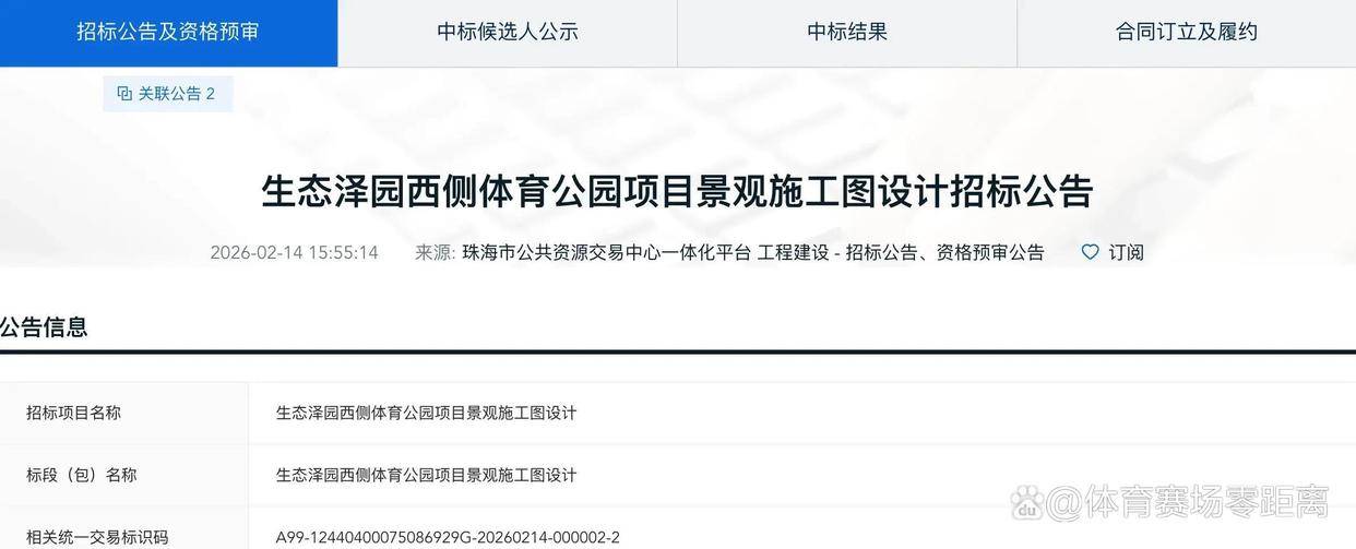 根据广东省公共资源交易平台发布的《生态泽园西侧体育公园项目景观施工图设计招标公告》,项目已经进入实质性落地环节。公告释放出的信息显示,前期工作已经启动,选址、体量以及投资规模都摆到了台面上,逐步从纸面规划走向具体实施。