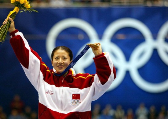 2002年2月16日,中国选手杨扬在美国盐湖城第19届冬季奥运会短道速滑女子500米决赛中勇夺金牌,实现了中国在冬奥会上金牌“零的突破”。新华社记者 赵迎新 摄