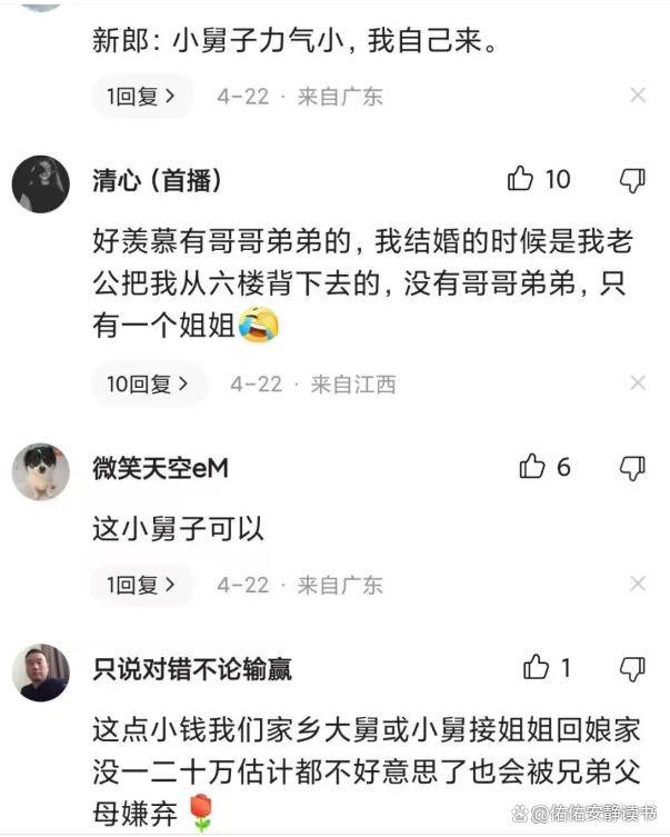心理学专家指出,这种仪式创新本质上是通过制造困难-解决问题的互动,强化姻亲之间的情感联结。就像网友@家有喜事 评论的:看似是讨红包,其实是给新郎制造表现机会——能让新娘家人开心,这钱花得比彩礼还值。