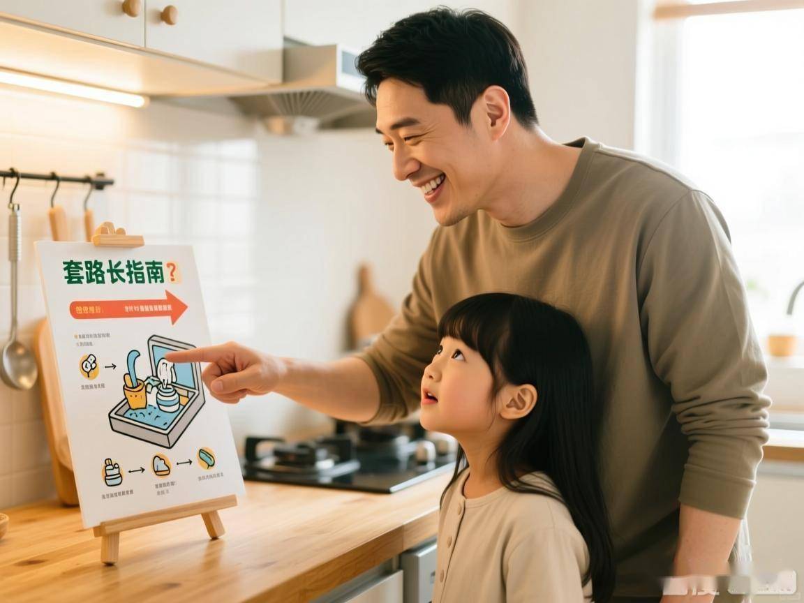 先说说这位爸爸的“套路”。从视频呈现的氛围看,没有争执,没有强迫,更像是一场充满默契的家庭小游戏。父亲的“换手”动作笨拙又明显,女儿的“懵圈”里带着笑意,这本质上是父爱表达的一种另类方式。澎湃新闻曾评论:“好爸爸不是第二个妈妈,父爱自带粗野、冒险、趣味的特质,这是母亲角色无法替代的”。比起板着脸命令孩子“必须洗碗”,这种游戏化的引导,反而降低了孩子对家务的抵触心理。苏州市人民政府官网曾刊发一篇家长手记,里面提到“生活是最好的教育,让孩子参与家务,比说教有效百倍”。这位爸爸或许没意识到,他的小套路,其实暗合了最朴素的教育逻辑——让孩子在轻松的氛围里,感知家务的责任。