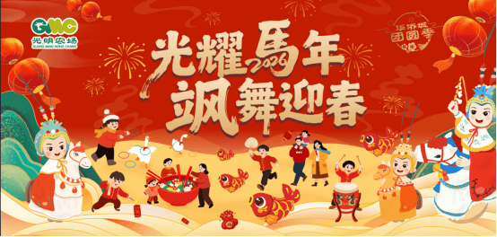 2026年春节,光明农场将举办第二届“光耀马年·飒舞迎春”非遗文化节。活动汇聚英姿飒爽的布马舞、气势磅礴的潮州大锣鼓等非遗表演,并设有“扇鲤鱼跃龙门”、亲子套鸭、萌娃撸兔会、巨型火锅夹夹乐等趣味互动,还有泡泡鱼NPC惊喜穿梭。